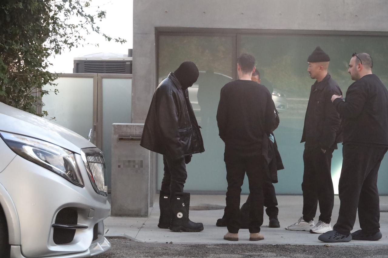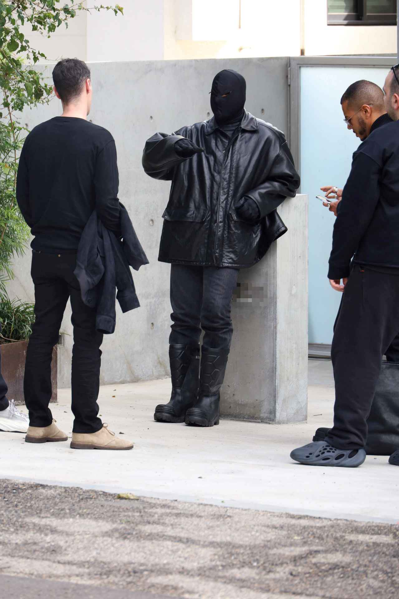 現在のマスクは写真を見る限りは真っ黒なもので、どこか、キムが昨年にメットガラで着用した全身黒子ルックを思い出させるようなものになっている。今回カニエが着用しているものは、目のところに切れ込みが入っている。