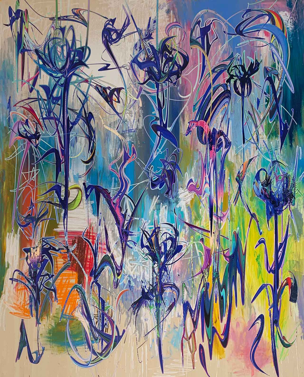彼の制作のスタイルは、アクリリックの特徴を活かしたペインティングならではの表現と、グラフィックデザイナーとしての経験を軸としたプリンティング技術を融合し、現代ならではの絵画の在り方を模索しながら制作している。