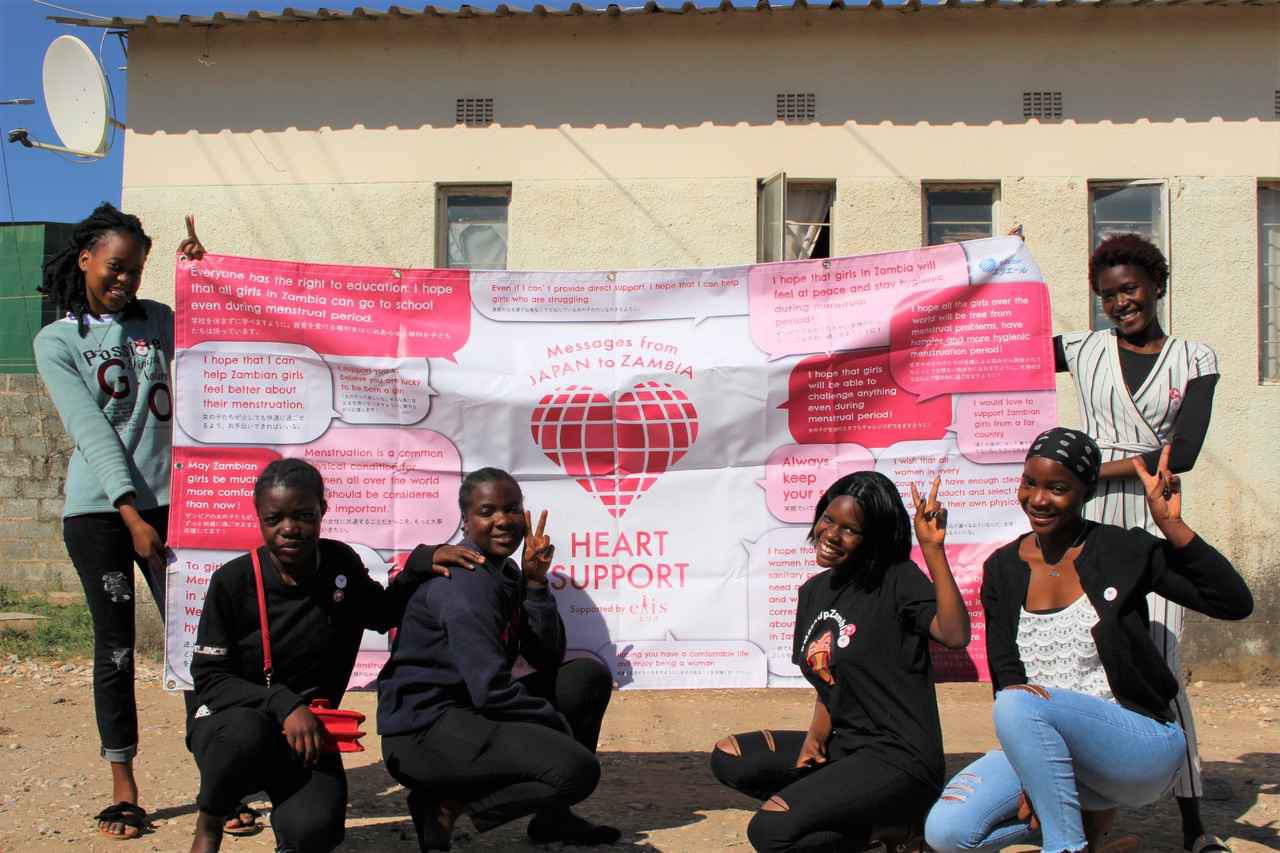 2021年には、SNSのメッセージを支援につなげる企画で、ザンビア共和国・首都ルサカ市のスラム街で生理用ナプキンを買うことができない女の子たちを支援。
