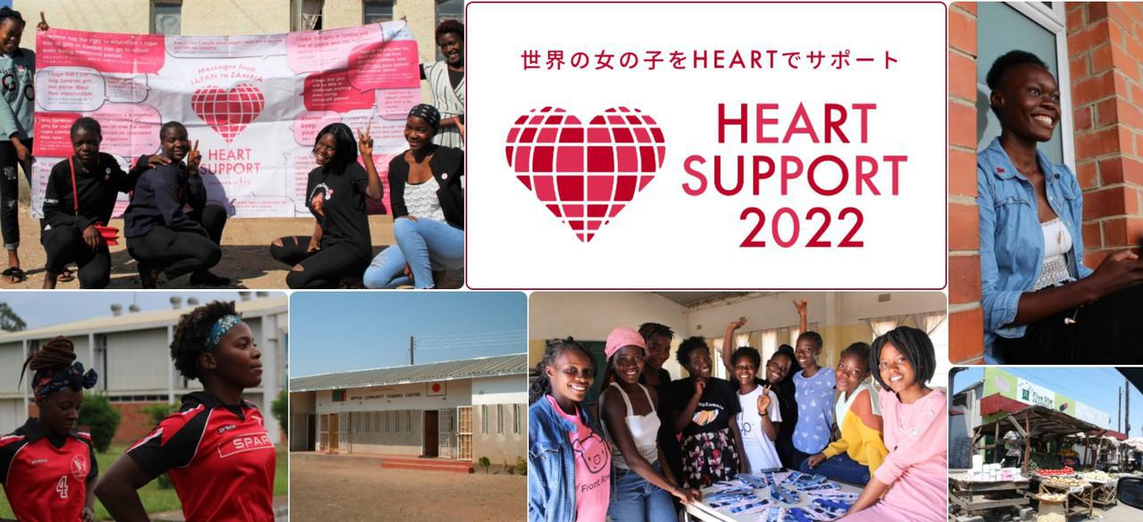 “生理が、あきらめる理由にならない世界へ。”をコンセプトに、2022年度も引き続き、ザンビアの女の子の自立につながるサポートを継続。前年に行なったSNSを通じた布ナプキン作製支援を実施するほか、今年は新たな取り組みとして、渋谷区立宮下公園で開催されるイベントに「ハートサポート」オリジナル支援販売機を設置する。