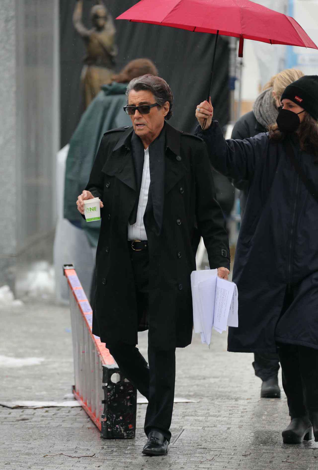 この日の撮影では、ウィンストンを演じるイアン・マクシェーンの姿も確認された。ふたたび2人が直接顔を合わせるのだろうか…!? 休憩中にサングラスをかけるイアンの姿は、劇中では見られないスタイルで素敵!