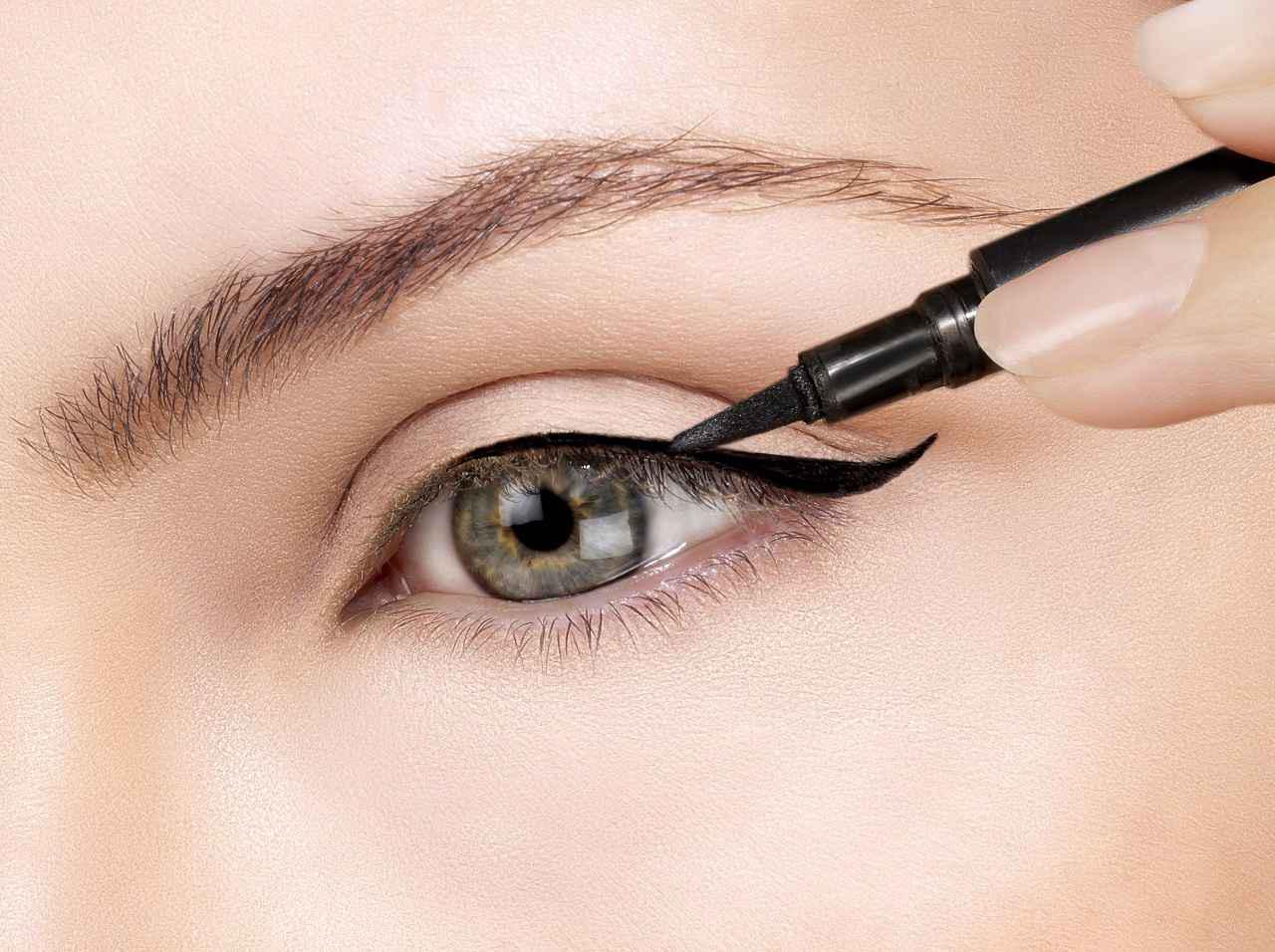 そんな下がり気味な目尻を手っ取り早く引き上げる最も簡単な方法は、アイライナーを跳ね上げること。アッシュは「目元を引き上げたいなら、目尻を跳ね上げたアイラインを取り入れるのがいいでしょう。絶対に失敗しません」と断言。
