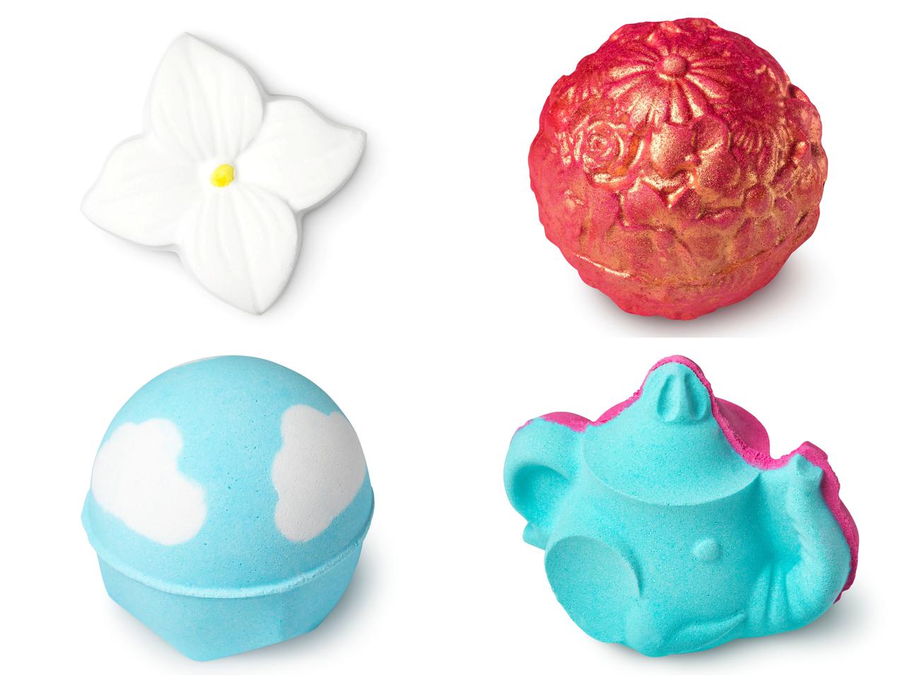 左上からフローラル ボム(バスボム)730円(税込)/ロージーゴールド(バスボム)980円(税込)/アトム ハート マザー(バスボム)870円(税込)/エレファントポット(バスボム)980円(税込)