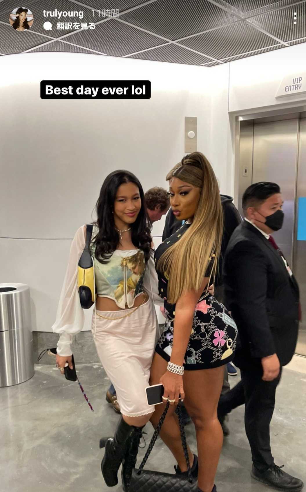 ドクター・ドレーの娘であるトゥルーリー・ヤングは、VIP席で観戦。多くのセレブたちが近くにいたため、お気に入りのアーティストであるメーガン・ジー・スタリオンと写真を撮ってもらい、「最高の日(笑)」とコメントをつけて2ショットを公開。