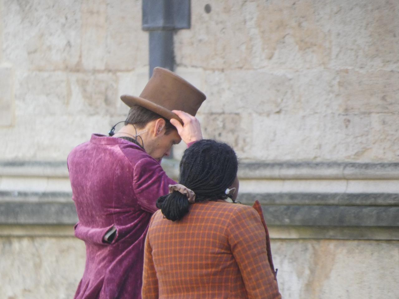 ティモシー・シャラメ主演の『Wonka(原題)』の撮影風景を、イギリスのオックスフォードでキャッチ! ティモシー以外にも、様々な人物が撮影に参加。(フロントロウ編集部)
