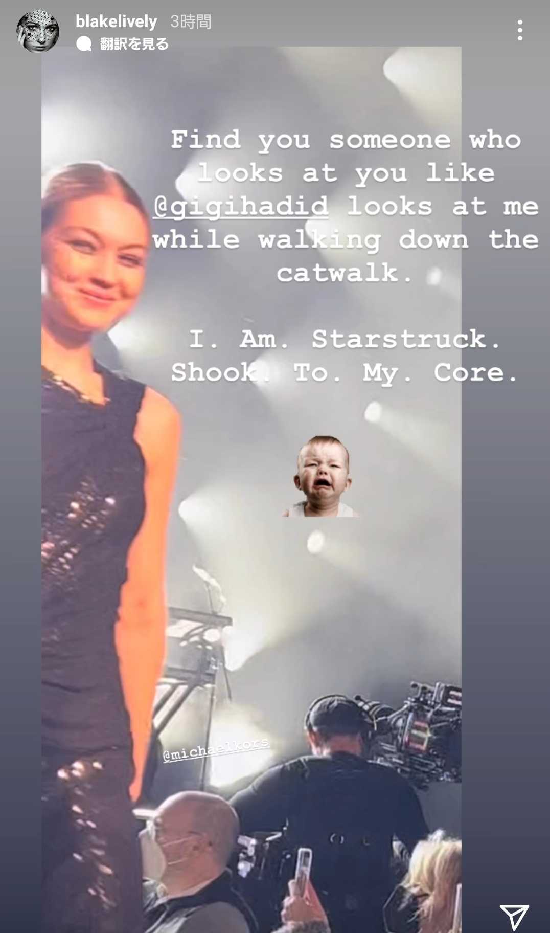 俳優のブレイク・ライブリーが、マイケル・コースのショーに参加した際、モデルのジジ・ハディッドから受けた“ファンサ”を明かした。(フロントロウ編集部)