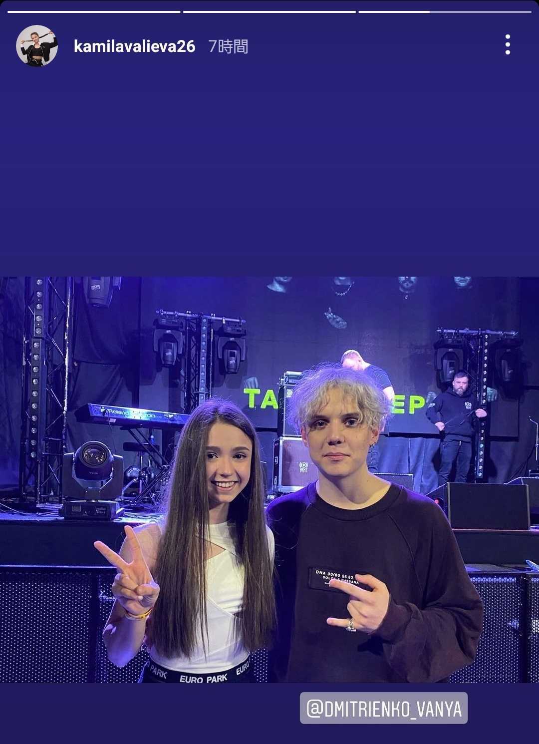 満員の会場で行なわれたコンサートにはカミラの姿もあり、体を揺らしながらノリノリで友人と楽しんでいるところが目撃され、コンサート終演後には、Vanya Dmitrienkoと2ショット写真を撮ることに成功。その写真を自身のインスタグラムで公開し、競技から離れ、普通の15歳としての姿を見せた。