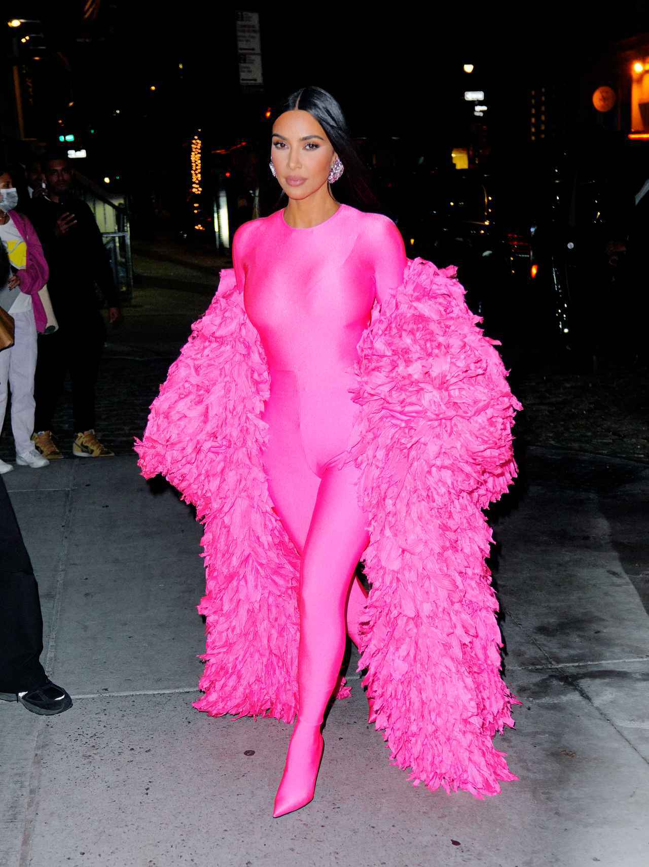 全身バレンシアガのアイテムで身を包んだキム。グローブとコートをピンクで揃えたキムは、バッグとブーツをシルバーにして引き算。ビッグサイズのロングコートはウエストを絞り、しっかりウエストマークをすることでスタイルアップ。