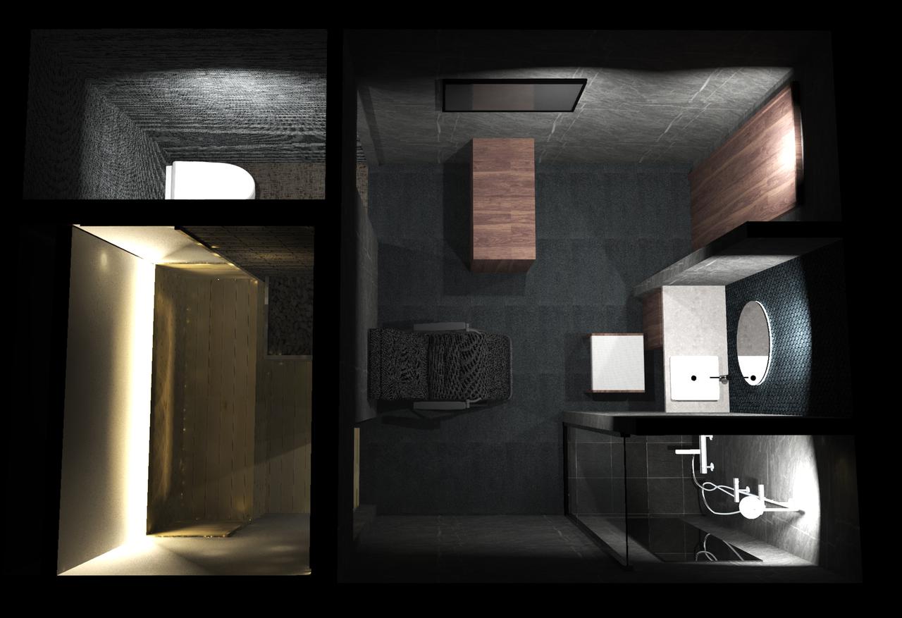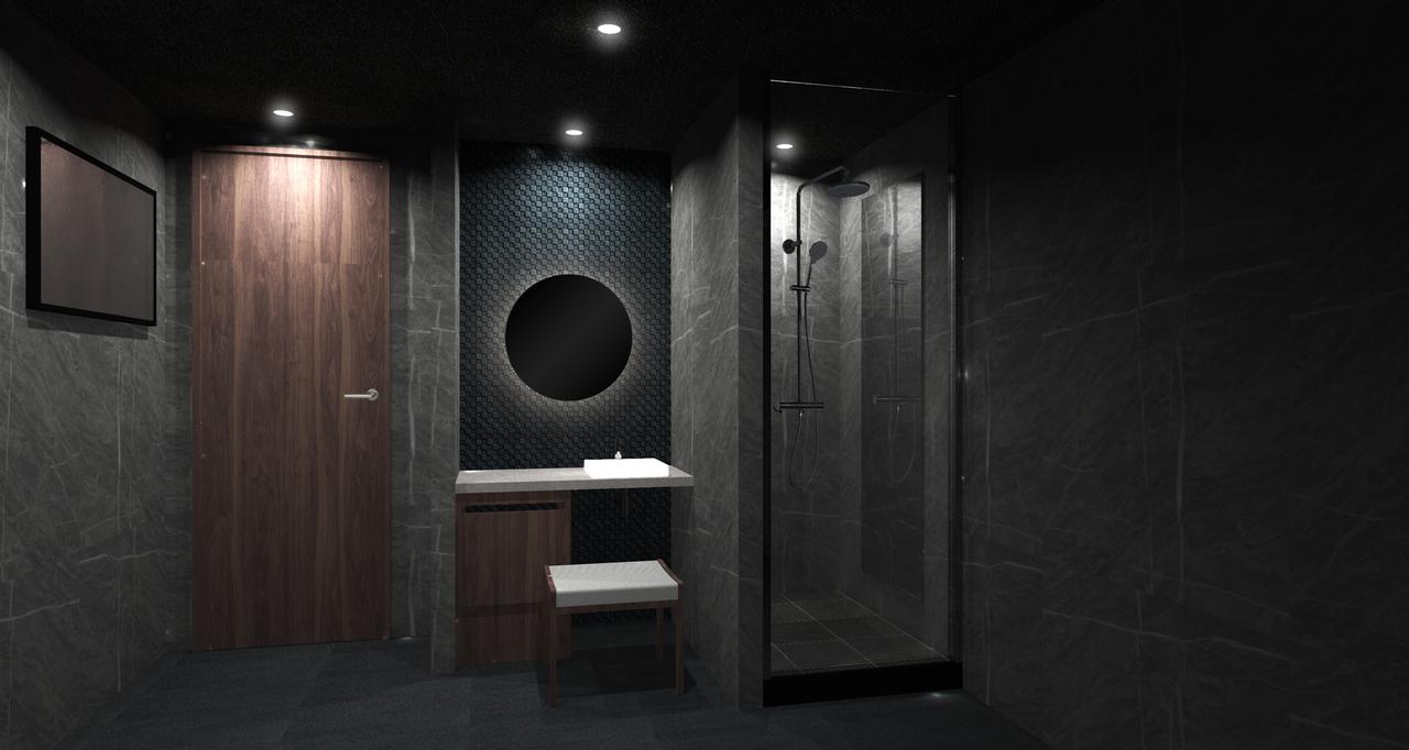 パウダースペース、冷水のオーバーヘッドシャワー(完成イメージ)
