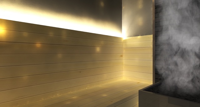 サウナ室から冷水シャワーでのクールダウン後、休息できるインフィニティチェアを完備し、パウダースペースも個室内に設計。サウナ室は、人目を気にせず好きなタイミングで「セルフロウリュ」を楽しめる本格的なフィンランド式サウナを採用している。