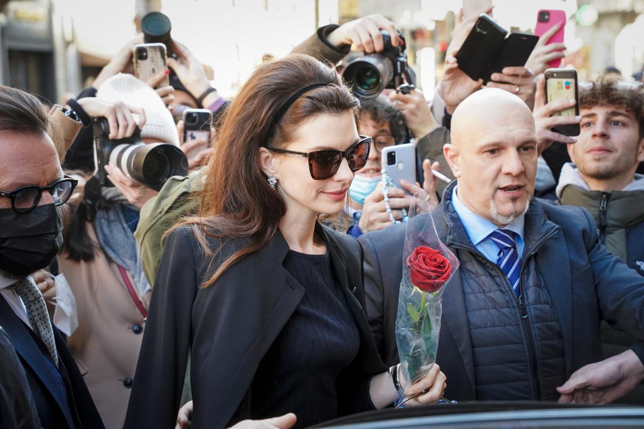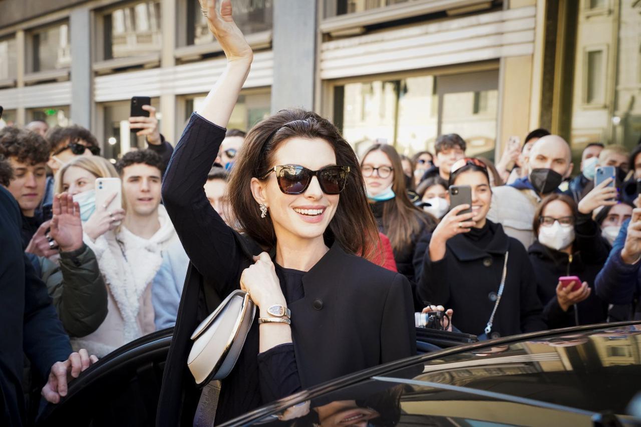 一目見ればすぐにスターだと分かるそのオーラから、街では多くのファンに囲まれたアン。アルマーニのファッションショーへ向かうために車に乗り込む前に、集まった人々へ手を振る様子はまるで映画のワンシーンの撮影中かと誤解しそうになるほど。