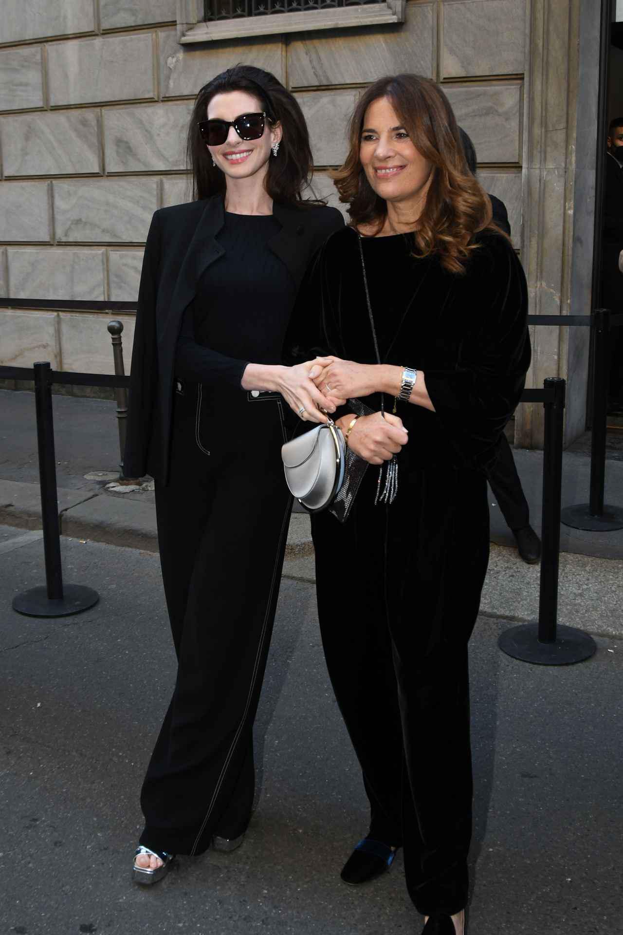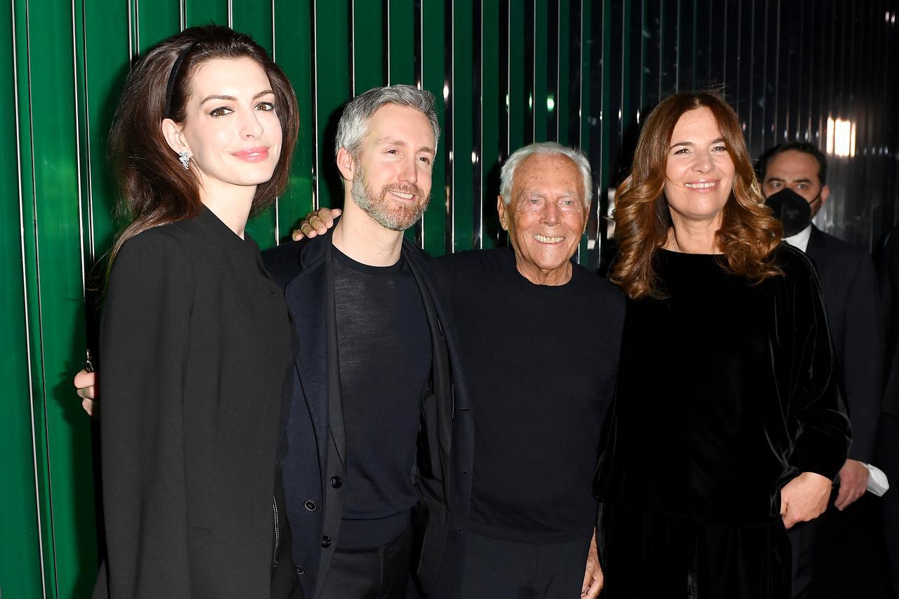 その後、アンの夫である俳優のアダム・シュルマンも合流し、アルマーニのショーでは、デザイナーのジョルジオ・アルマーニとともに記念撮影をしていた。