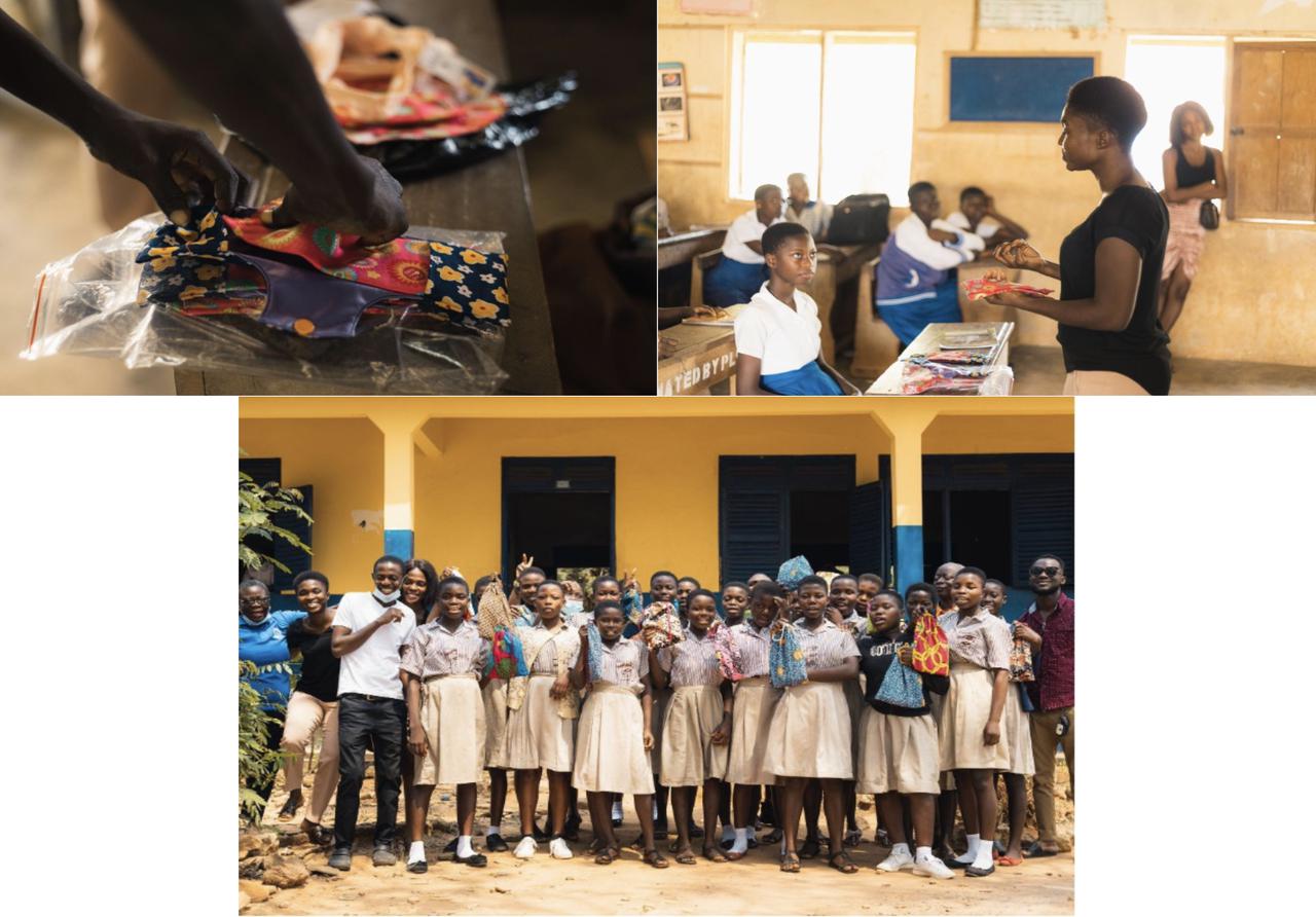 今回のコラボレートプロジェクトでRinēは、自社の吸水ショーツを現地ガーナの学校に寄付し、布ナプキンの生産に向けた技術を提供。さらにDooooooooが現地で行なう性教育授業において、生理についてや吸水ショーツの使い方、洗い方のレクチャーを含む授業内容への助言を行なうなどの支援を実施するという。