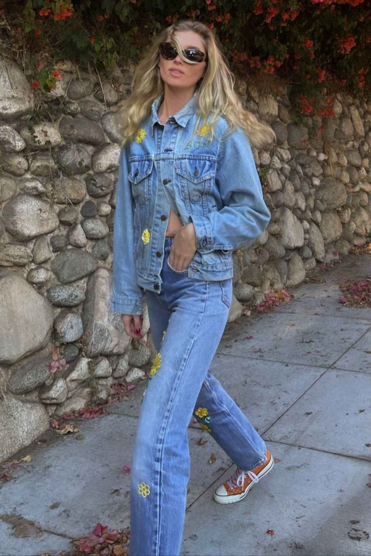 Levi’s(リーバイス)のGジャンとデニムをセットアップで着用してレトロなコーデを披露した人気モデルのエルザ・ホスクは、足元にマスタードカラーのチャックテイラーを合わせてポップに飾って。ストレートデニムとチャックテイラーはすっきりとまとまって好相性!