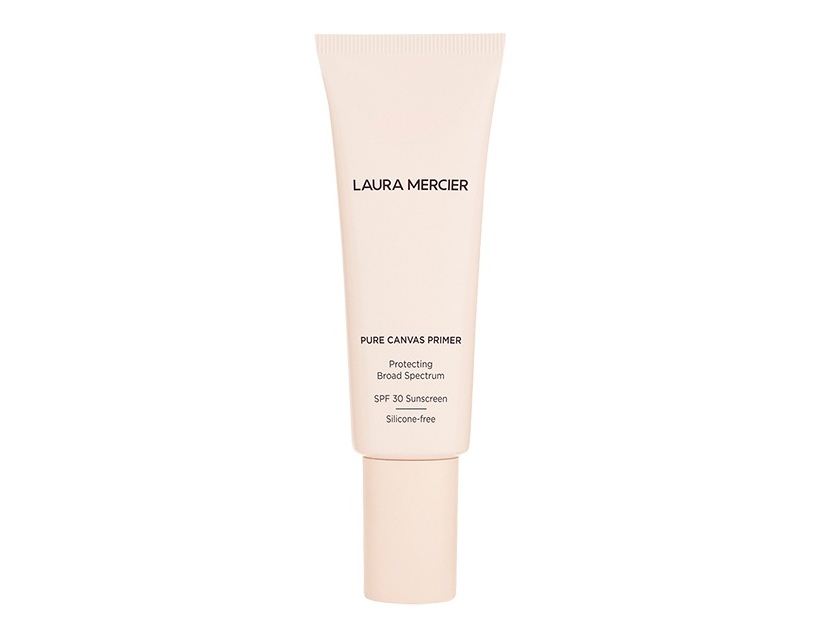 1つめのアイテムは、ローラ メルシエの「ピュア キャンバス プライマー プロテクティング」。SPF30、PA+++のUVカットプライマーで、紫外線から肌を守りながらベースメイクの仕上がりとカラーメイクのキープ力を格上げ。
