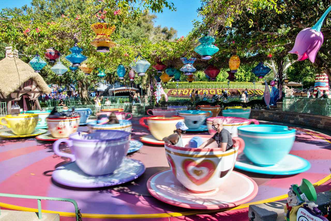 この日、2人が乗ったのは、映画『ふしぎの国のアリス』をモチーフにしたティーカップのアトラクション「マッド・ティーパーティー」。日本の東京ディズニーランドにも「アリスのティーパーティー」と名付けられたまったく同じアトラクションがあるので、ご存じの方も多いはず。ハンドルを回すことでカップが回転する方向や速度が変えられるといういたってシンプルなアトラクションで、身長制限もないので、カーディのように小さな子供連れの家族に人気が高い。