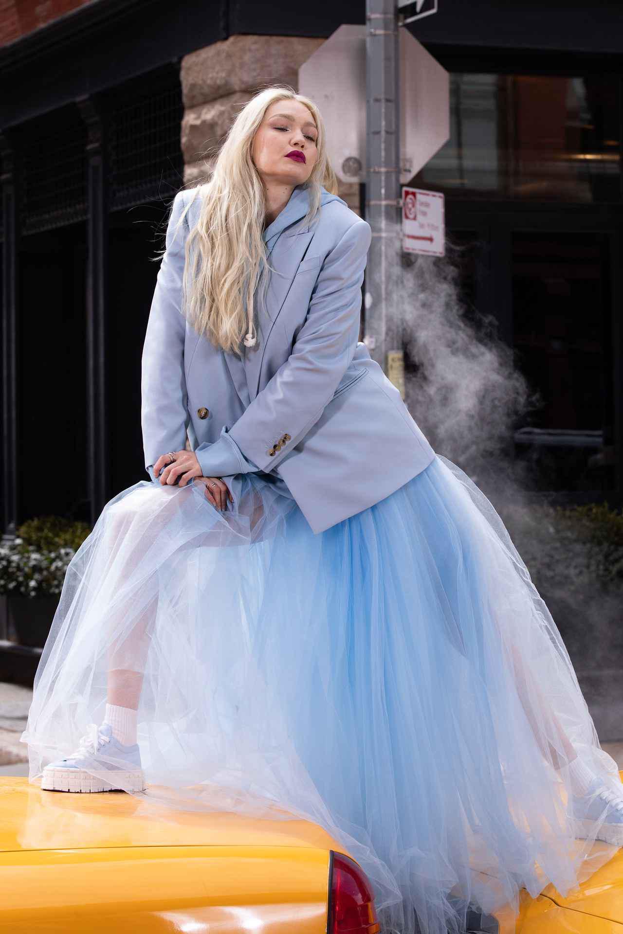 人気モデルのジジ・ハディッドが、ニューヨークの路上で撮影をしている姿が、現代のシンデレラのようだった。(フロントロウ編集部)