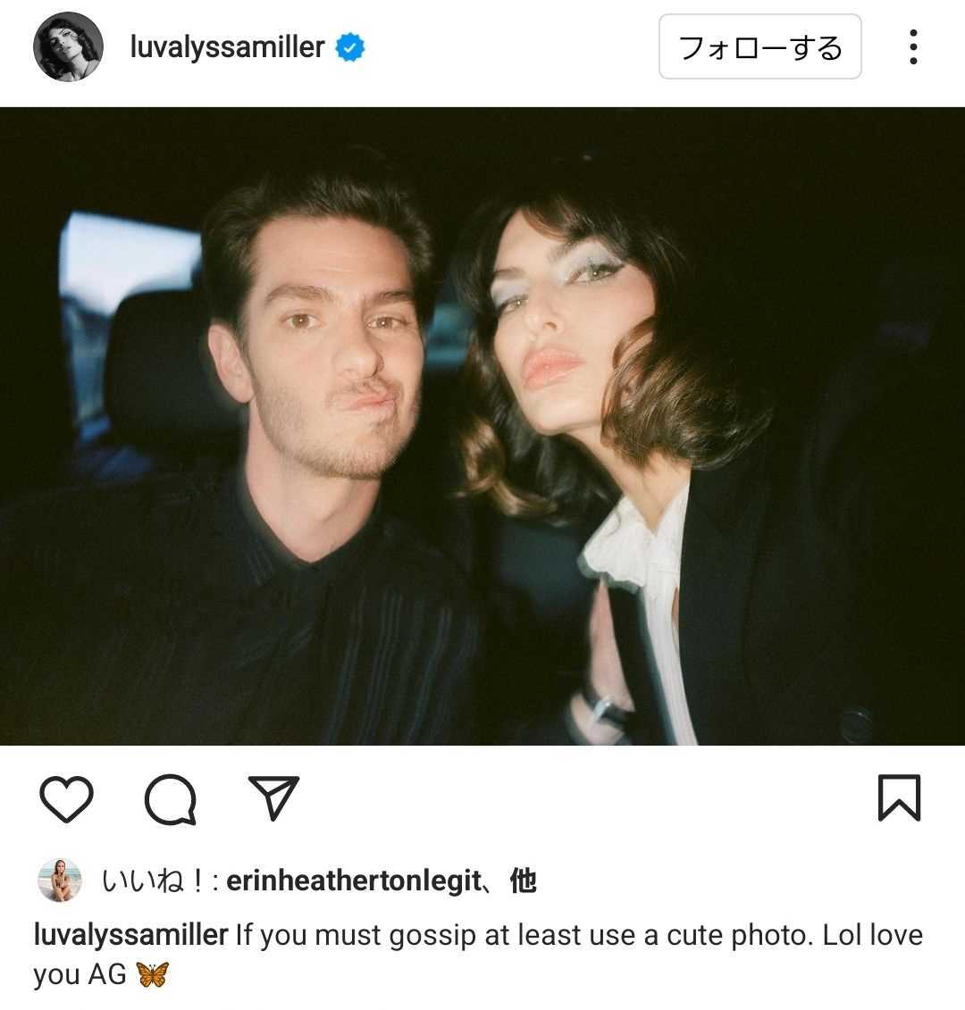 俳優のアンドリュー・ガーフィールドと破局したと報じられたモデルのアリッサ・ミラーが、報道後にアンドリューとの2ショット写真を公開した。(フロントロウ編集部)