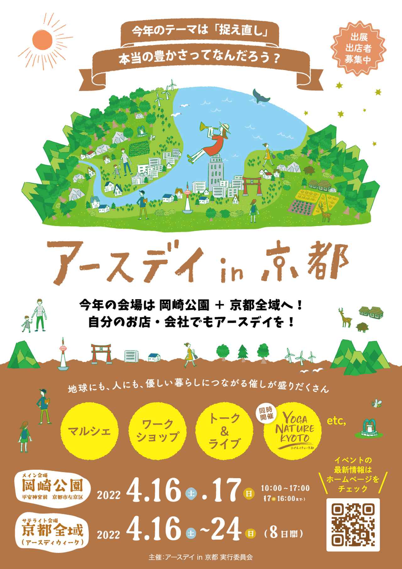 2022年4月16日から24日の期間、環境都市の京都全域で開催されるのが「アースデイ in 京都 2022」。「捉え直し」をテーマに掲げる「アースデイ in 京都 2022」は、地球に優しい暮らしを目指すために日々の暮らしや営みをいま一度振り返り、捉え直すきっかけをくれる。