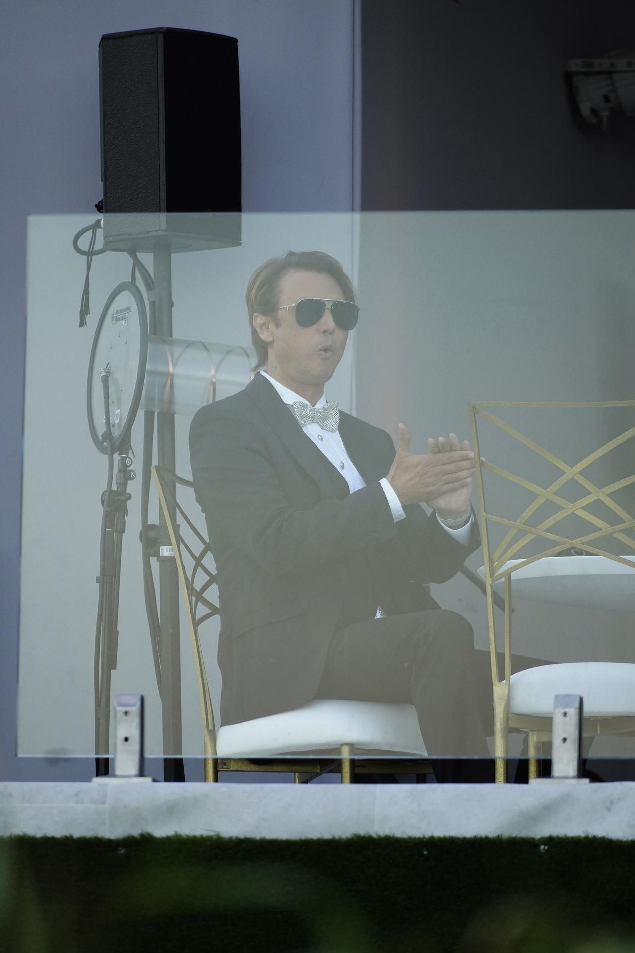 一般的にはシンプルである蝶ネクタイを目立つアクセに変えたジョナサン。ある意味主役よりも輝いていた。(フロントロウ編集部)