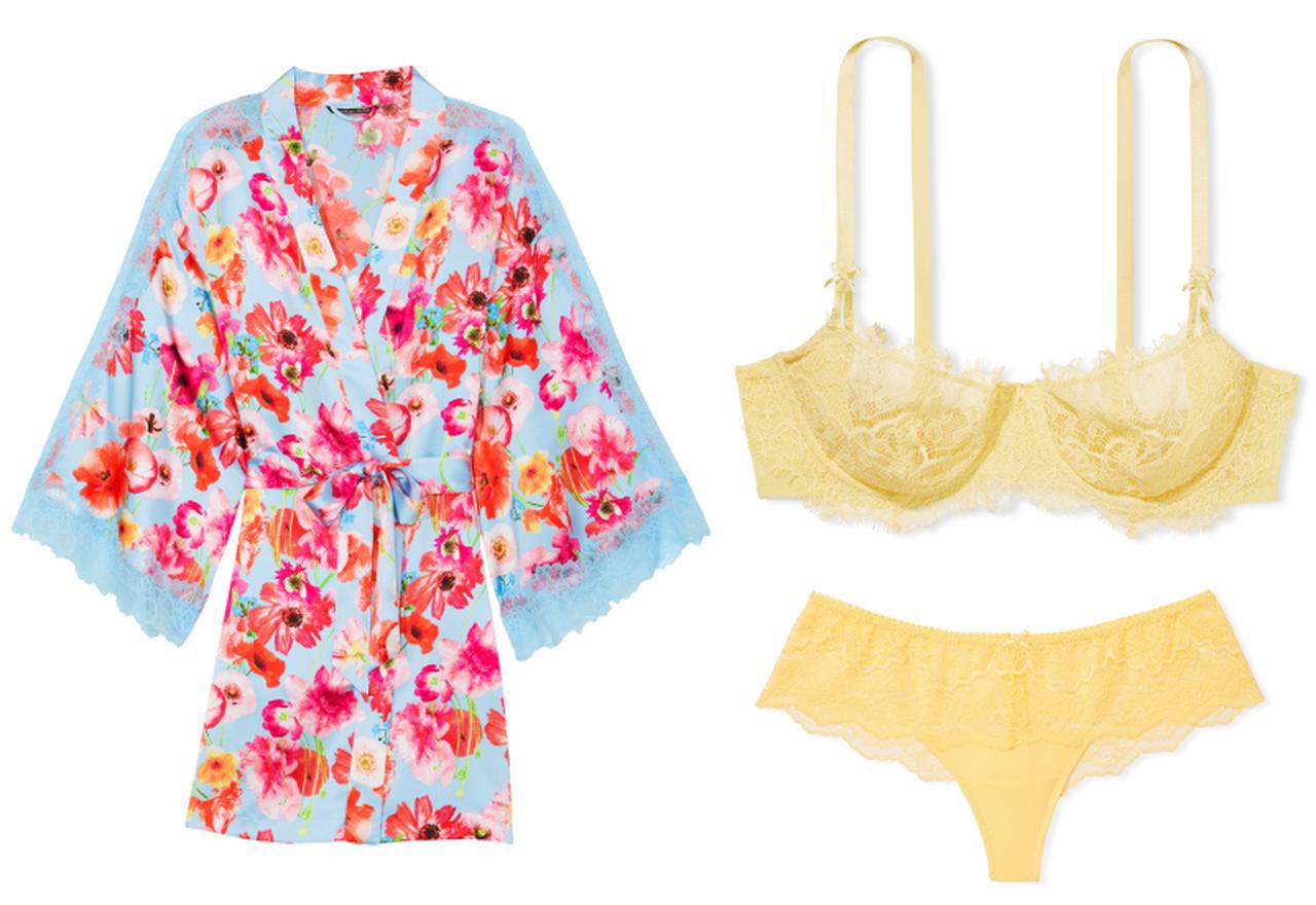 ヴィクトリアズ・シークレットが得意とする美しいシェイプをキープするブラも、春らしいライトカラーが登場。フラワーが散りばめられた鮮やかなローブを羽織ってお家時間を楽しんで。すっきりとしたラインと袖の繊細なフローラルレースが嬉しい華やかなサテンのローブは、ショールカラー、フロントのタイベルト、フレア袖が特徴。