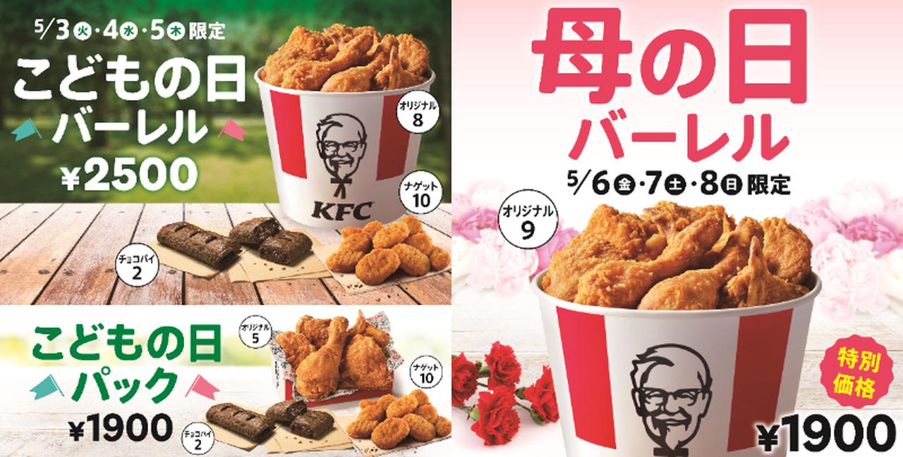「オリジナルチキン」に子供も食べやすい「ナゲット」や「チョコパイ」を組み合わせた「こどもの日」特別メニューと、「オリジナルチキン」が特別価格でたっぷり9ピース入った「母の日」特別メニューが登場。家族みんなでおうちでワイワイ楽しみたい。