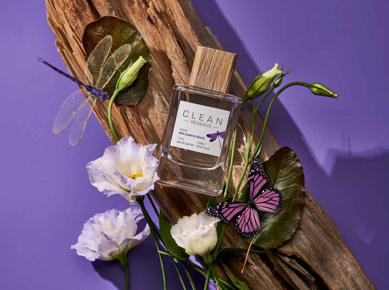 今回特別に販売されるのは、「クリーン リザーブ スキン オードパルファム(リミテッド)」。ボトルとアウターボックスには、世界規模で減少している授粉媒介生物の大切さを啓蒙するという意味が込められていて、受粉媒介生物である蝶や地球規模で絶滅の危機に瀕しているトンボがモチーフとして描かれている。
