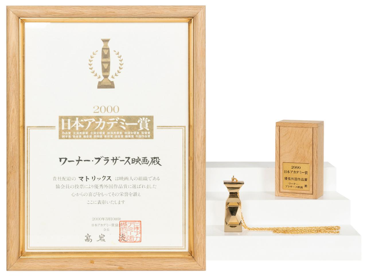 サイトに公開された賞状の写真には、「ワーナー・ブラザース映画殿」と書かれたうえで、『マトリックス』が優秀外国作品賞に選ばれたと記されている。サイトに載せられた商品説明によると、トロフィーの高さは約25cmだそう。