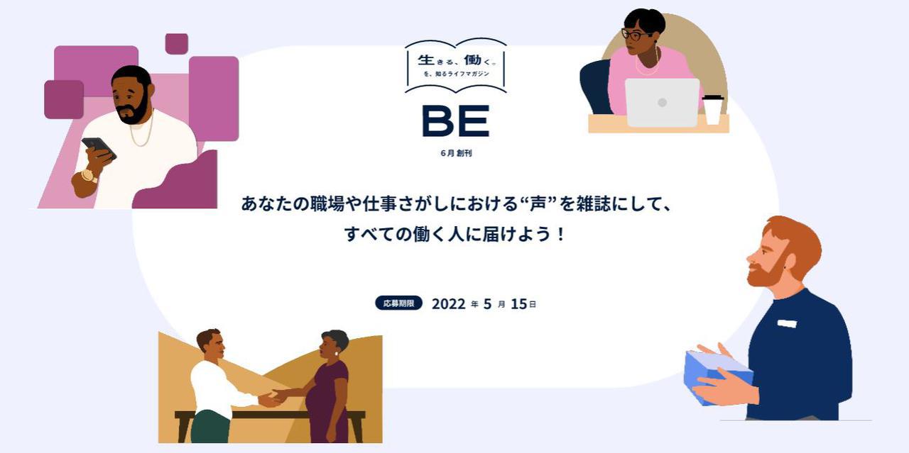 2022 年 6 月下旬に、「BE Voice」として寄せられた声をもとに、雑誌「”生きる、働く”を知るライフマガジン『BE』」を創刊します。『BE』を通じて、職場に存在する LGBTQ+を取り巻く誤解や認識不足を顕在化させることで、働く人々が職場や仕事でどんな行動を取ったり、気を配ったりしたらいいかを知る機会を創出します。