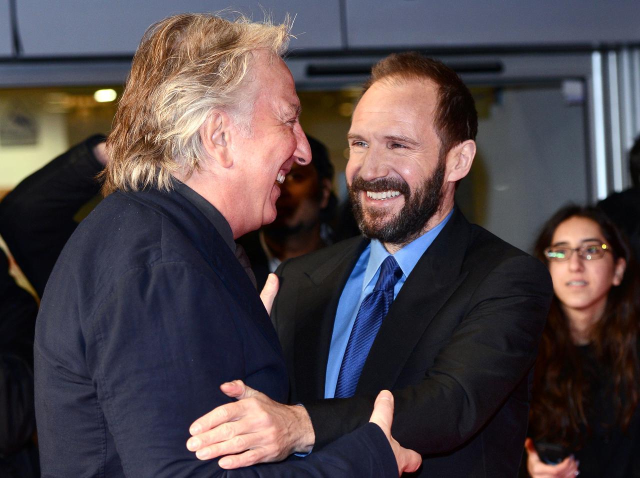 2014年に撮影されたアラン・リックマンとレイフ・ファインズ。