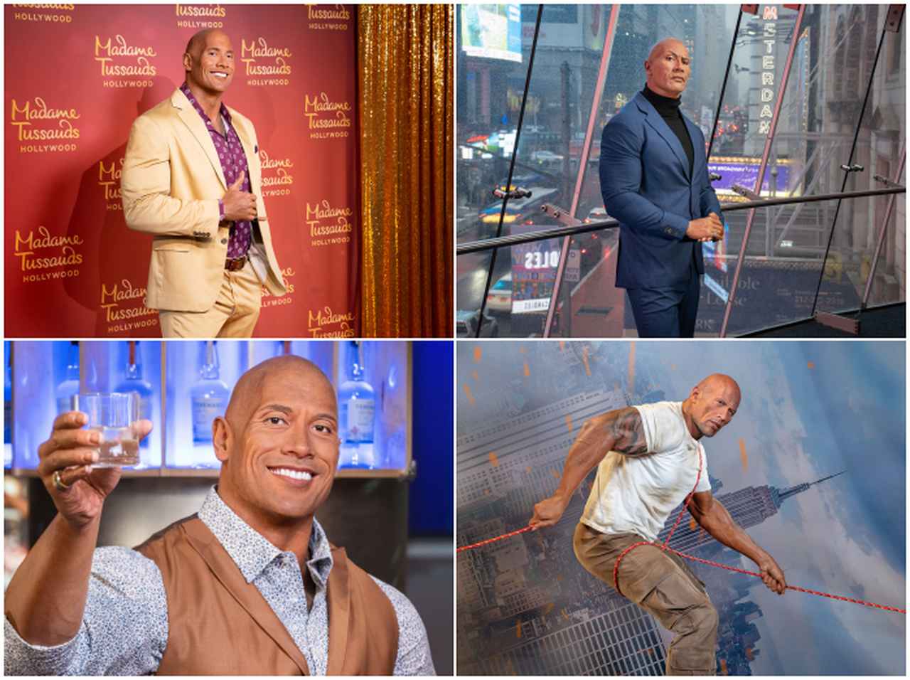 2022年より公開されたドウェイン・ジョンソンのろう人形。それぞれハリウッド(左上)、ニューヨーク(右上)、ラスベガス(左下)、オーランド(右下)のマダム・タッソーで展示されている。