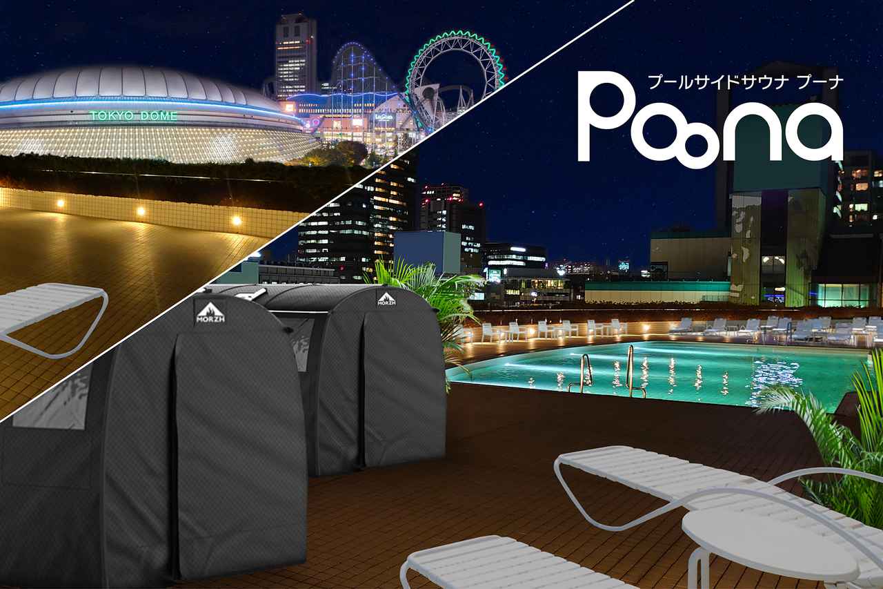 東京ドームホテルは、このたび「サウナ×浮遊浴」をコンセプトとしたプールサイドサウナ「Poona(プーナ)」を新設。