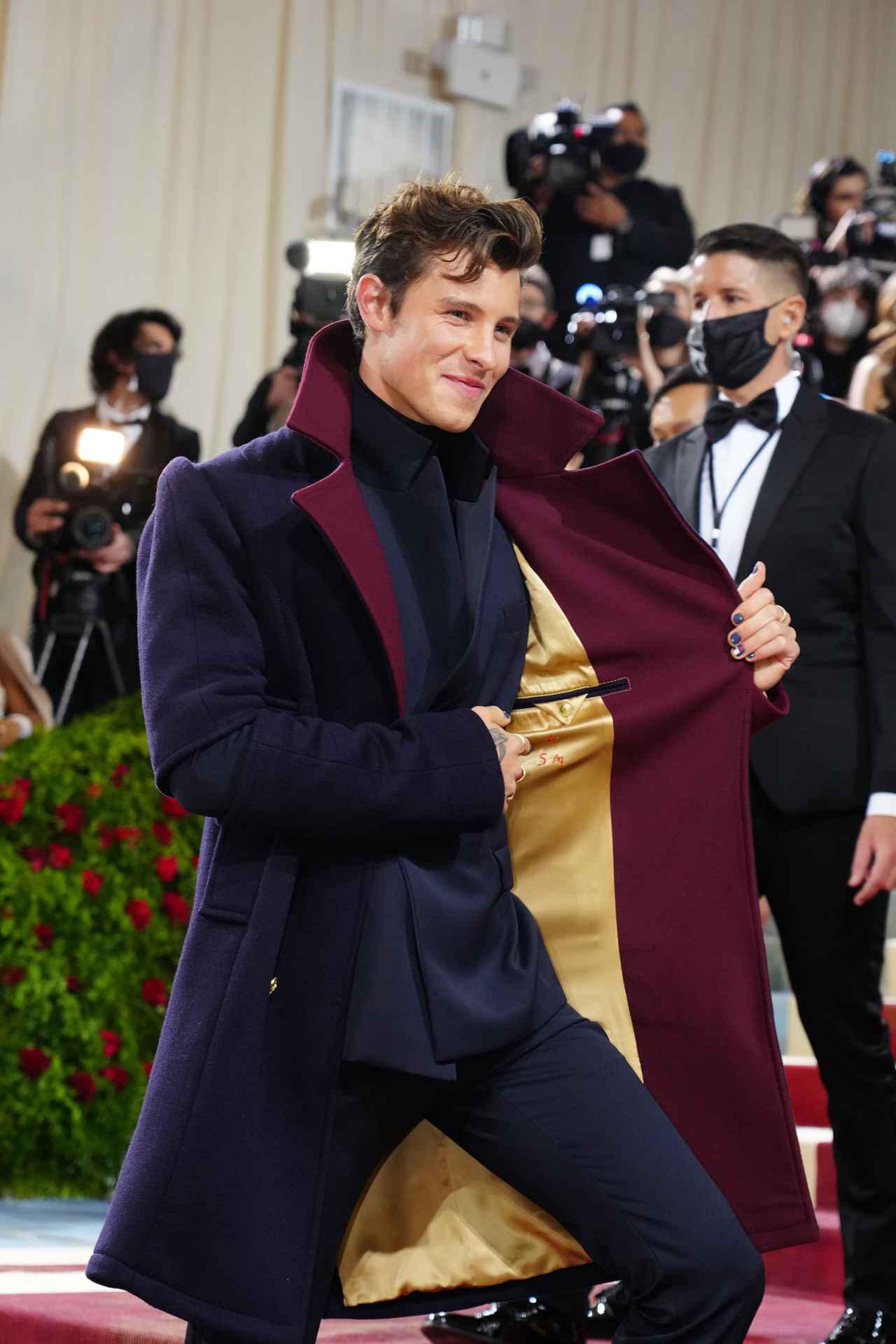ショーンのこの王子様ルックを仕立てたのはTommy Hilfiger(トミー ヒルフィガー)で、コートの裏地は2022年のメットガラのドレスコードである「Gilded Glamour(金色に飾られた魅力)」に合わせてゴールドに。よく見ると、裏ポケットのあたりにショーンのイニシャル「SM」の刺繍がほどこされていた。