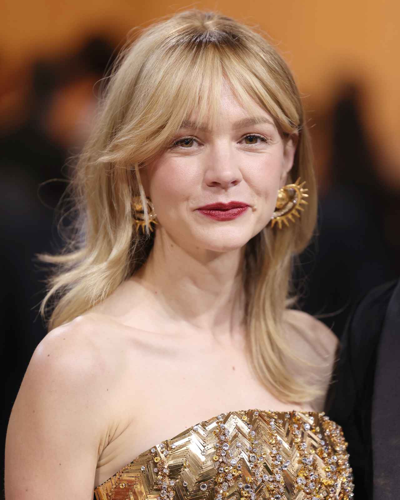 俳優のキャリー・マリガンは、束感のある薄い前髪をセンターで分けてふんわりとした柔らかな印象に。前髪はあえて均等な長さにカットせず、両サイドの髪となじみやすいように、サイドに行くにつれて前髪が長くなるのがおすすめ。