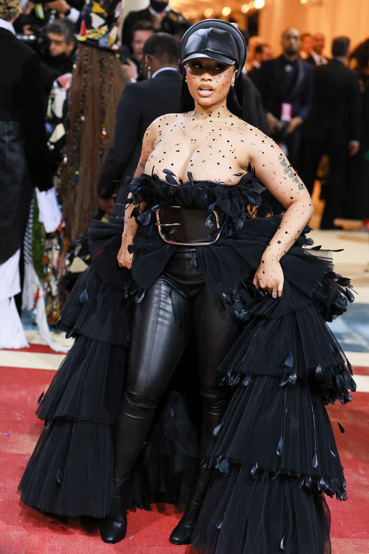 現地時間5月2日に米ニューヨークのメトロポリタン美術館でファッションの祭典、メットガラ(Met Gala)が開催され、ラッパーのニッキー・ミナージュが黒のチュールドレスにレザーパンツとレザーキャップを合わせた個性的なスタイルで会場に姿を現した。