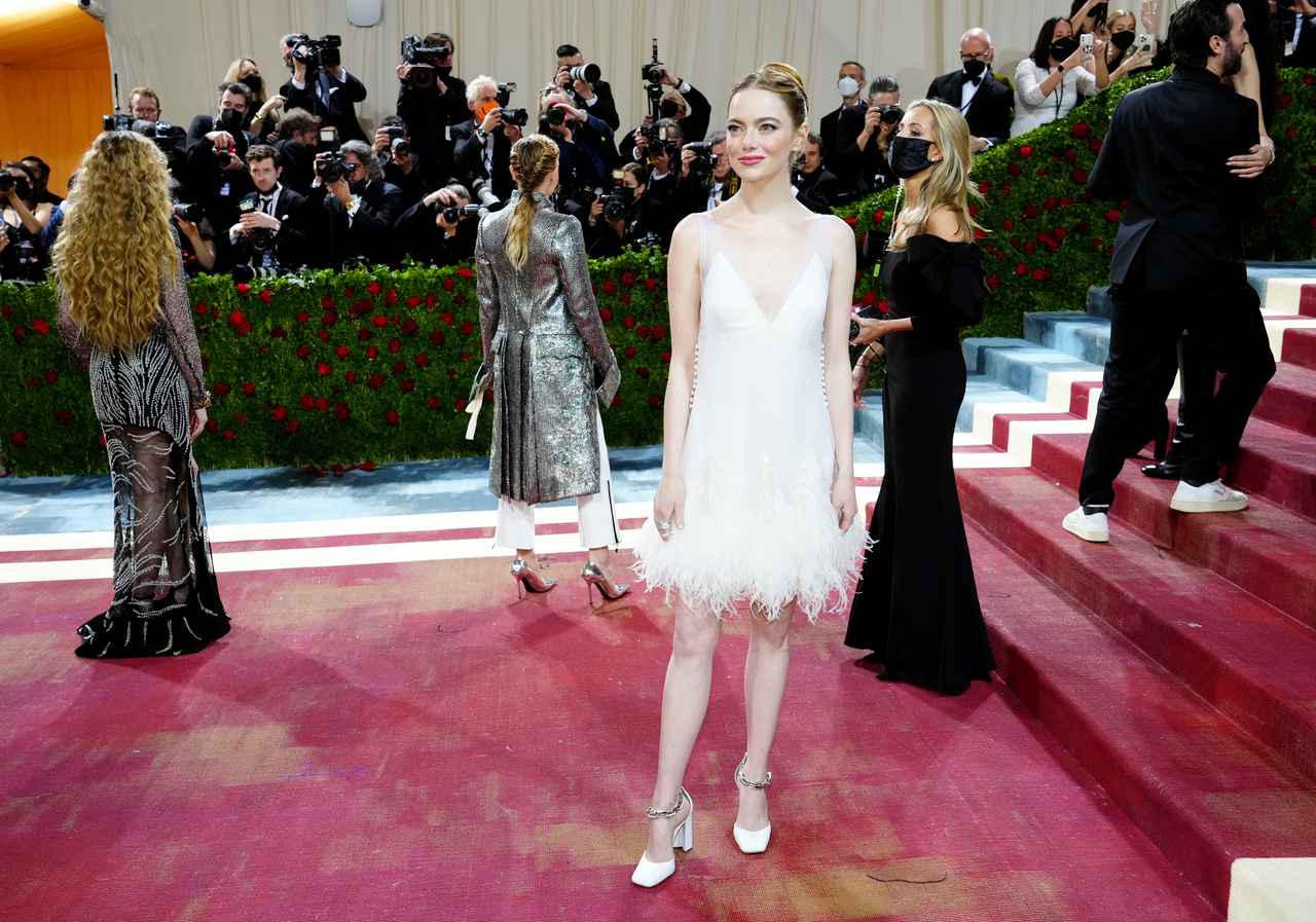 豪華セレブが勢ぞろいするファッションの祭典、メットガラ(Met Gala)が今年も米ニューヨークのメトロポリタン美術館で開催された。2021年に続いて、2022年のテーマでもある「In America: Anthology of Fashion(イン・アメリカ:アメリカのファッションのアンソロジー)」と、「Gilded Glamour(金色に飾られた魅力)」というドレスコードに沿って、それぞれが思い思いのファッションを楽しむなか、映画『アメイジング・スパイダーマン』や『ラ・ラ・ランド』などの代表作で知られる俳優のエマ・ストーンはスカートの裾にフェザーがあしらわれた白のミニドレスを着用。