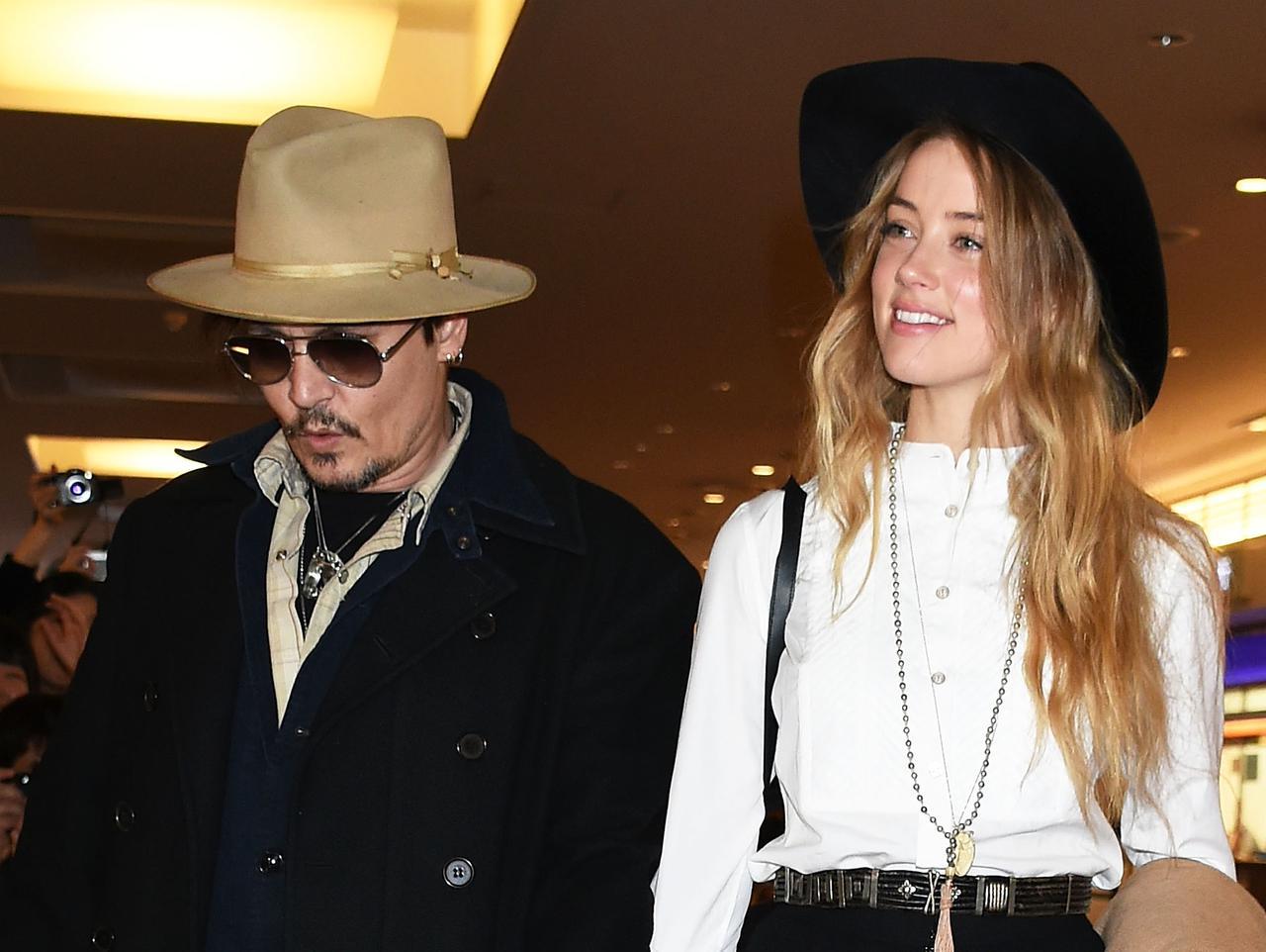 2015年1月に来日した際に空港で撮影されたジョニー・デップとアンバー・ハードの写真。