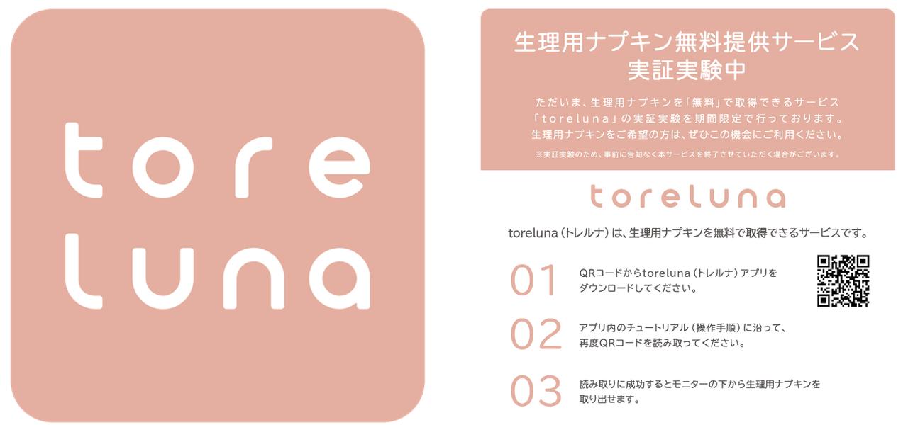 ナプキンがトイレに常備されていないことを社会課題と捉え、トイレ空間の再定義を行う「トレルナプロジェクト」の実証実験が全国5都市9箇所でスタート。対象のトイレには、生理用ナプキンを無料で受け取れる新サービスのベータ版「toreluna」が設置される。(フロントロウ編集部)