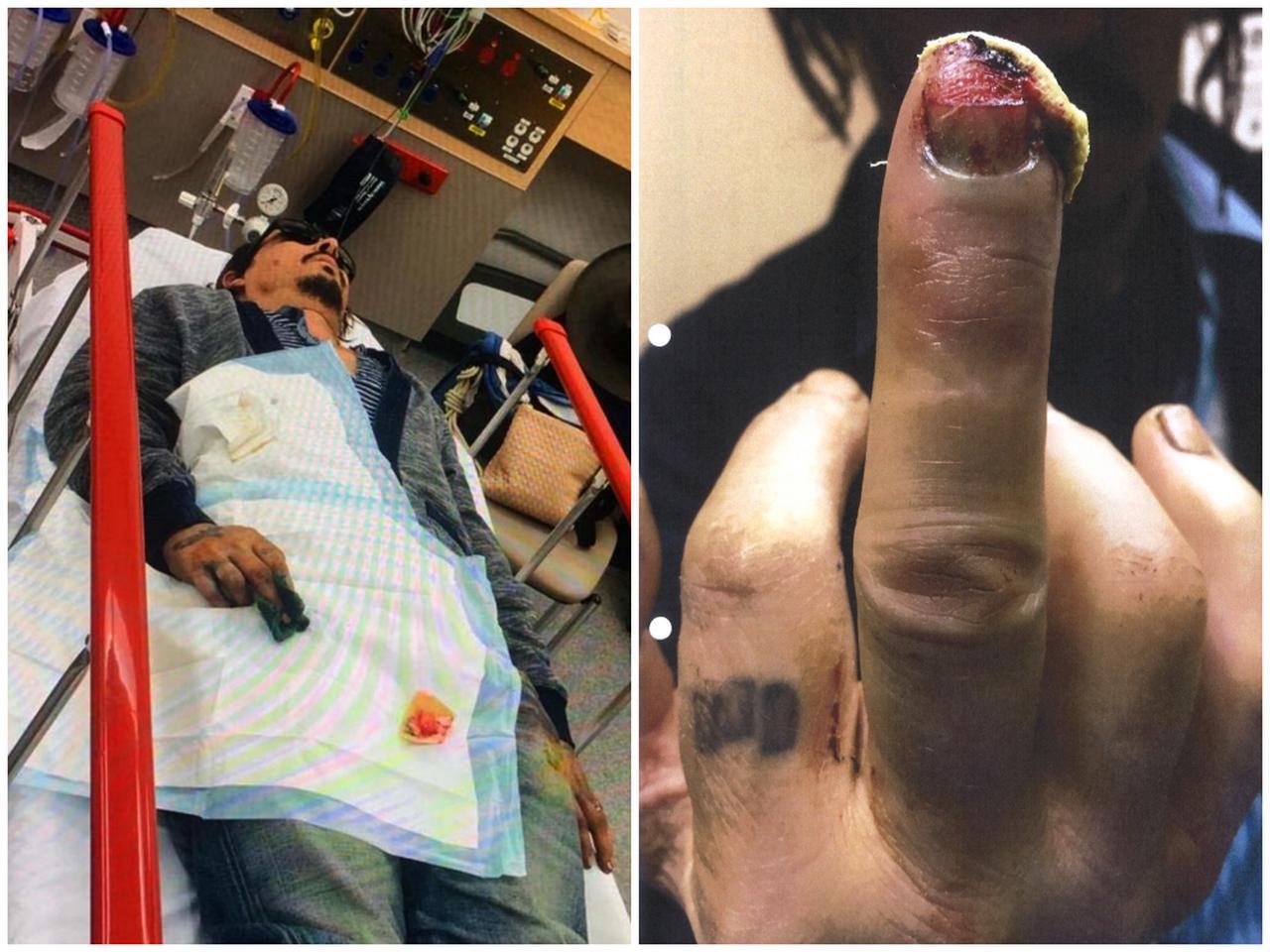 指の怪我で近隣の病院に搬送されたジョニー・デップ。