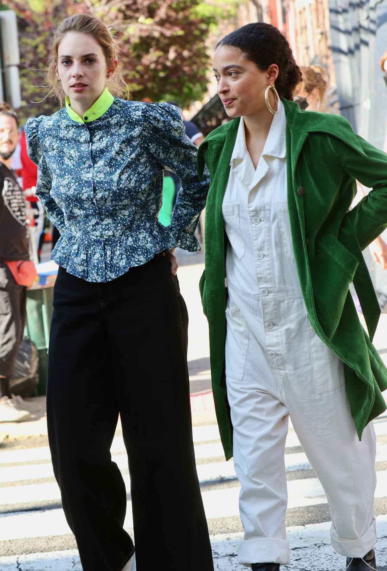そして新キャストであるデビの姿を、カメラがキャッチ。この日の彼女の衣装は…、着物が羽織り! 海外では、着物を羽織りとして着るのが1つのファッションスタイルとしてあり、彼女が演じるキャラクターもそういう感性の持ち主のよう。どのような役どころかは不明だが、一緒にいたのがアートディーラー役であるユマであることや、その衣装から、アート業界のキャラクターなのではないだろうか。