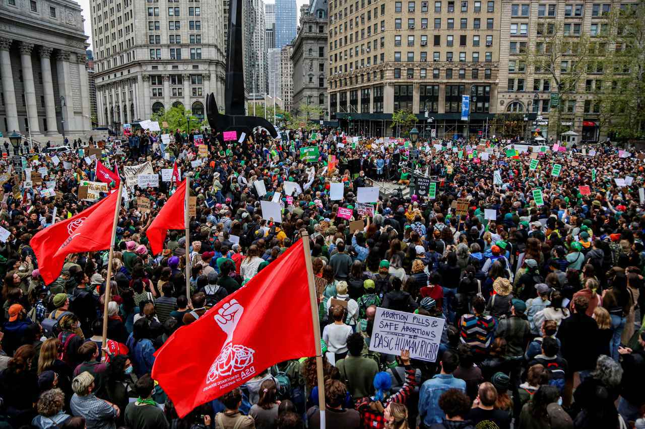 現在、女性の中絶の権利が脅かされているアメリカでは、多くの市民が声をあげている。(2022年5月3日にニューヨークで撮影)