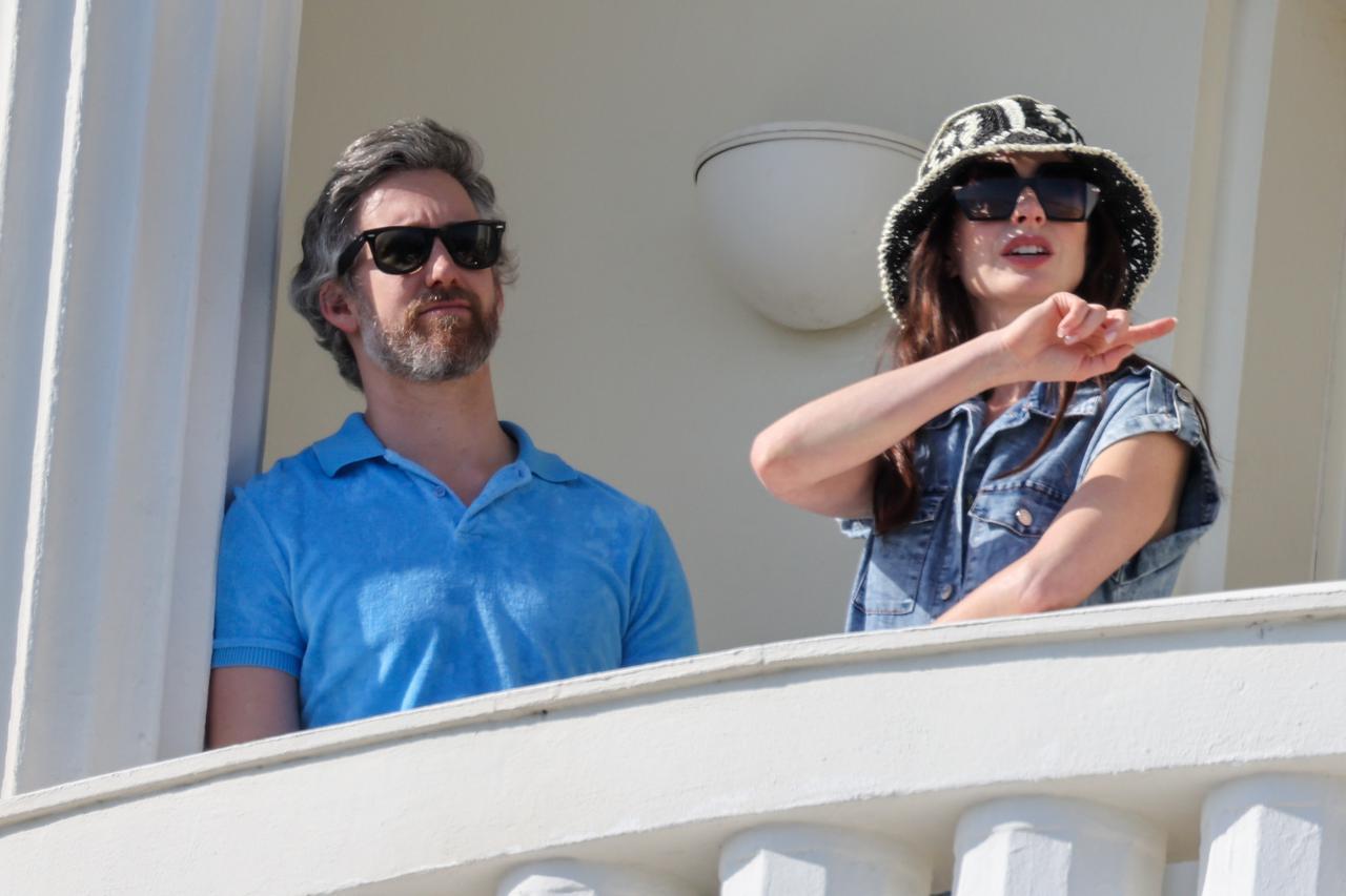 アン・ハサウェイと夫、高級ホテルのバルコニーでたそがれる姿が映画のワンシーン