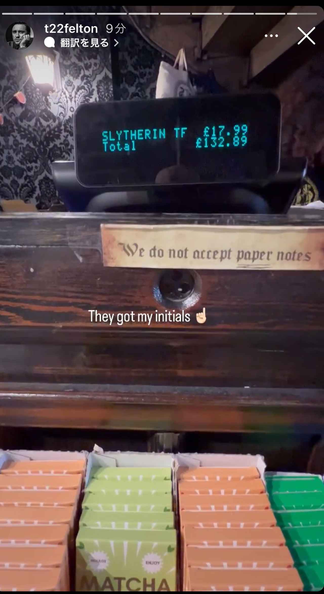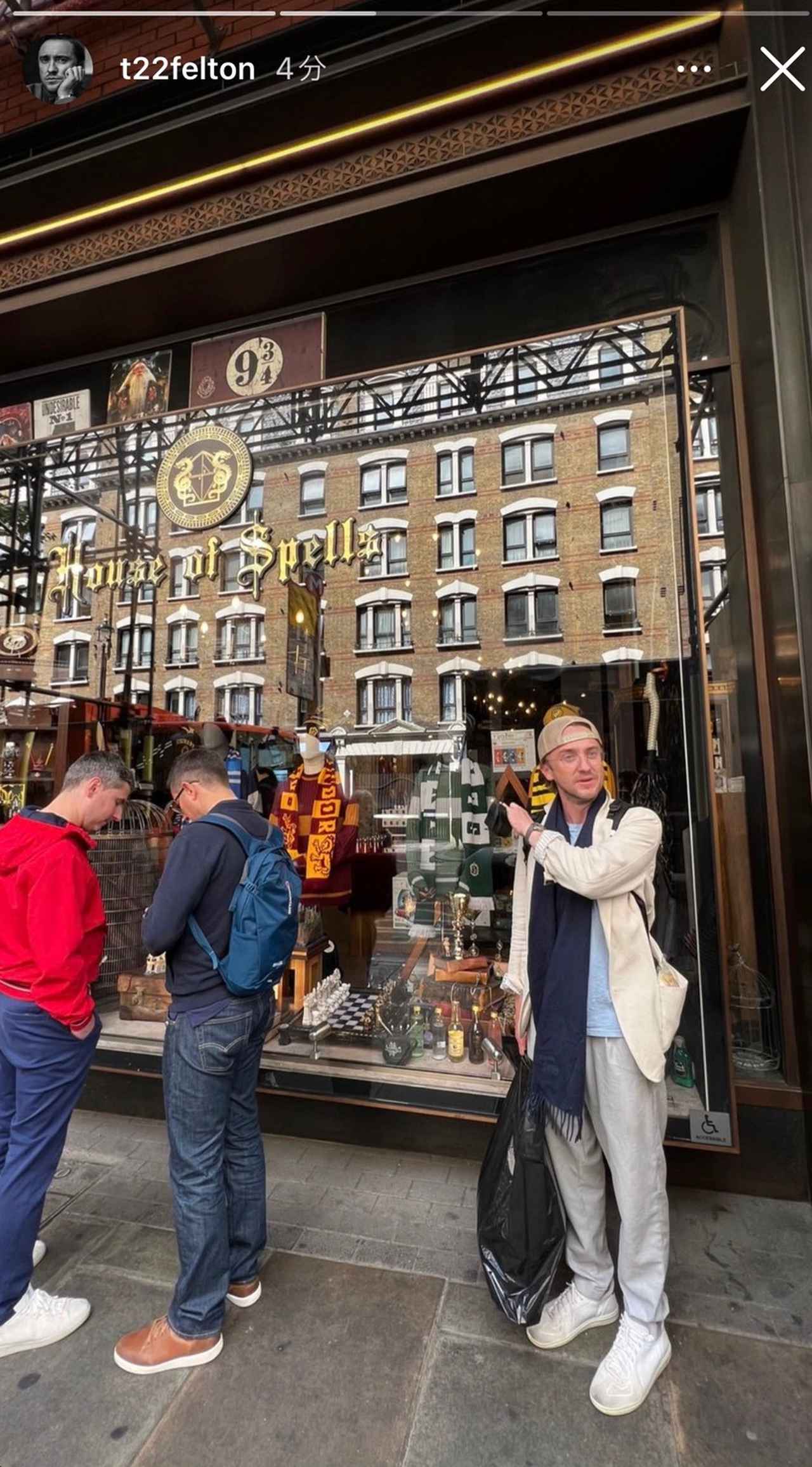 トムはこの日、『ハリー・ポッター』グッズの専門店であるハウス・オブ・スペルも訪れており、店の前で撮った写真をインスタグラムストリーズに投稿。