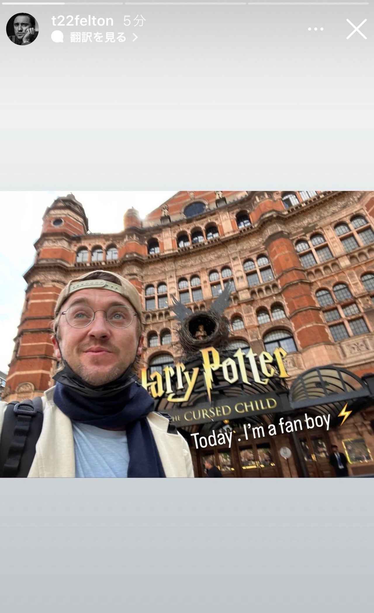 2021年に公開から20周年を迎えた大人気シリーズ『ハリー・ポッター』でドラコ・マルフォイを演じて世界的にブレイクしたトム・フェルトンが先日、舞台『ハリー・ポッターと呪いの子』が上演されているロンドンのパレス・シアターを訪れたことをインスタグラムでファンに報告した。
