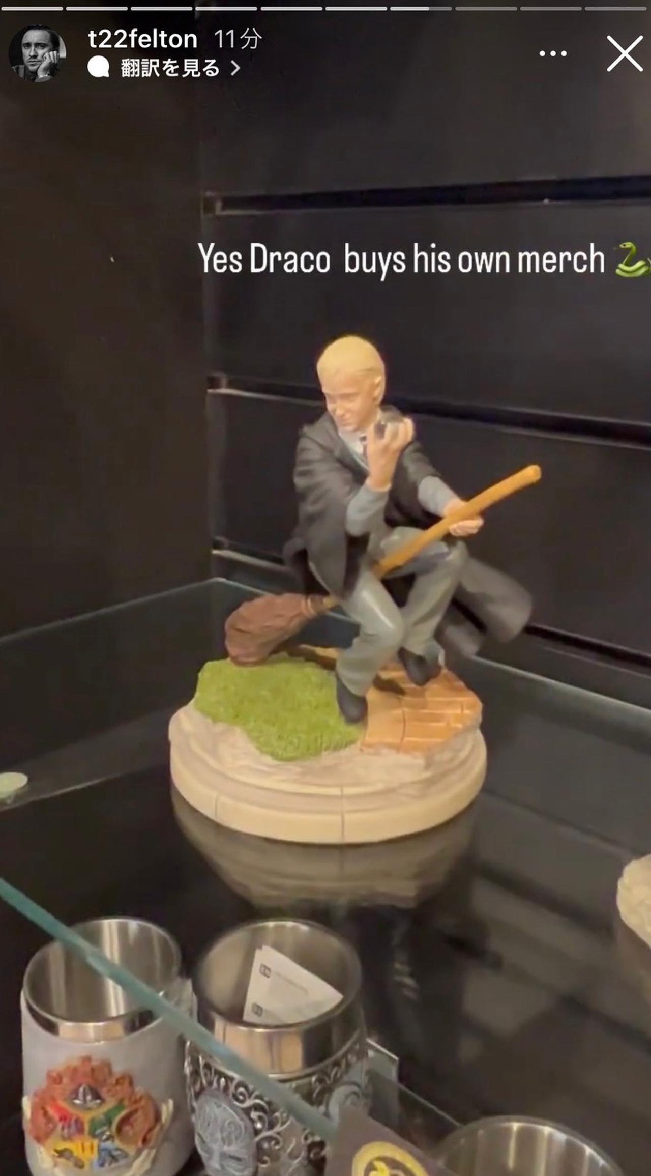 自身のフィギュアを前に、「そう、ドラコが自分のグッズを買っているんだ」と綴ったトム。