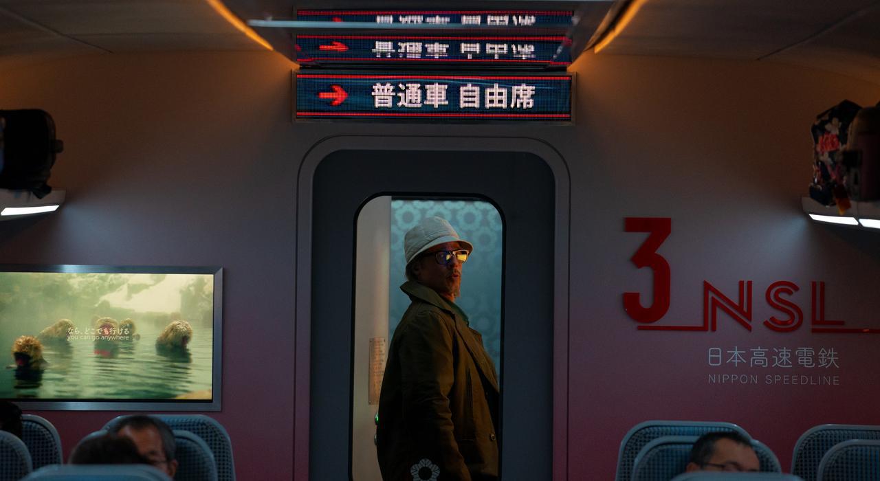 今回公開された日本版ポスターでは、ブリーフケースを抱えたブラッドが、日本らしい景色のなかでしかめっ面。また、高速列車のなかで彼を襲う殺し屋たちの写真も一挙に公開された。