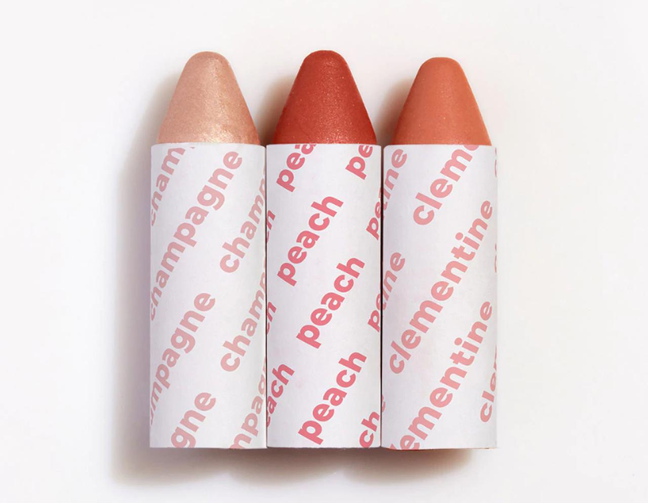 Axiologyの「VEGAN MULTI-USE BALMIE」はクレヨン型のマルチバームで、リップはもちろん、アイシャドウやチークとしても使えるアイテム。プラスチック製の容器は使わず、リサイクル可能な紙を巻き付け、外箱には古紙などの廃材で制作した素材を使用。しかも外箱や紙は使用後にコンポスト可能となっている。
