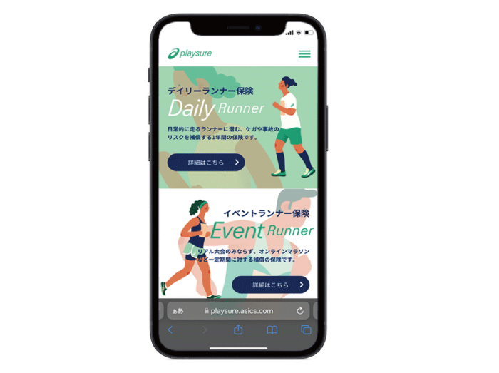 アシックスによる新会社アシックス・プレイシュアでは、アシックスが培ってきた知見を取り入れながら、ランナーのための、ランナーの実情に見合った保険の開発、提供に努める。