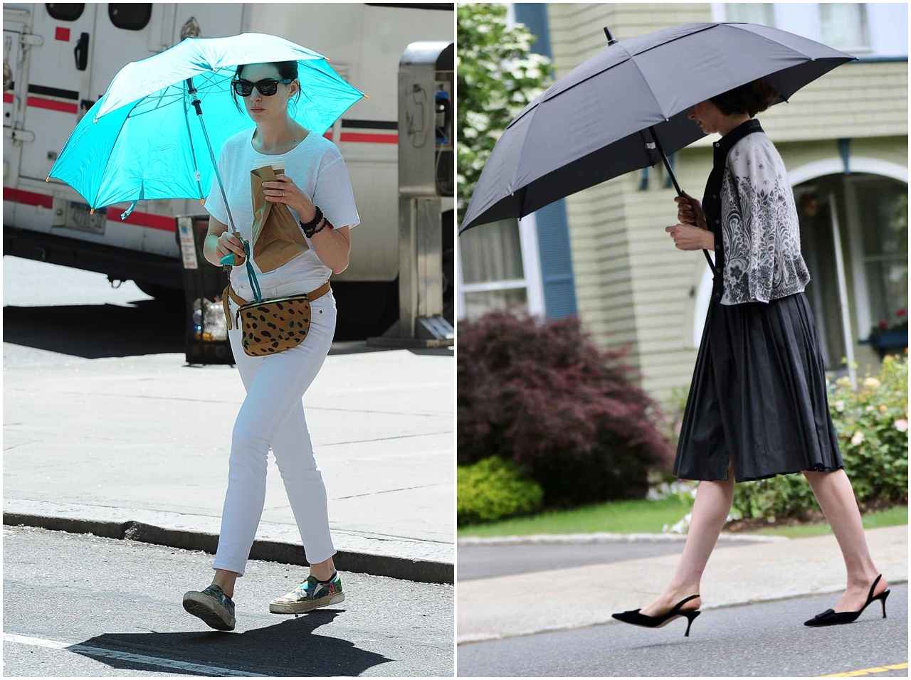 その後もアンが日傘をさして歩く姿がキャッチされていて、現在撮影が進められている映画『Mothers’ Instinct(原題)』の現場でも日傘を手に持ちながら移動していた。