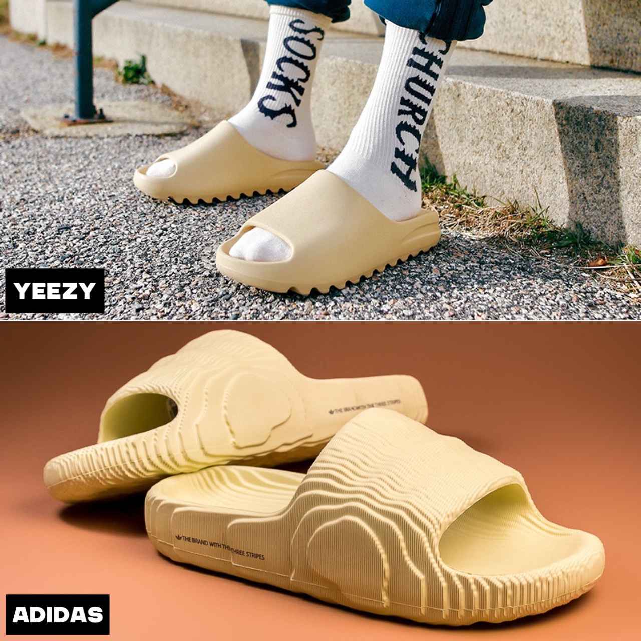 しかしこのスライドサンダル、過去にYeezyが発売したYeezy Slideと色味やボリューム感がそっくり。そのためカニエはアディダスからナイキにスポンサーを乗り換えた故コービー・ブライアント(通称マンバ)を引き合いに出し、「これは、コービーが通ったのと同じ通りを走るYEです。たぶん、今、マンバ魂を感じています」とインスタグラムでコメント。